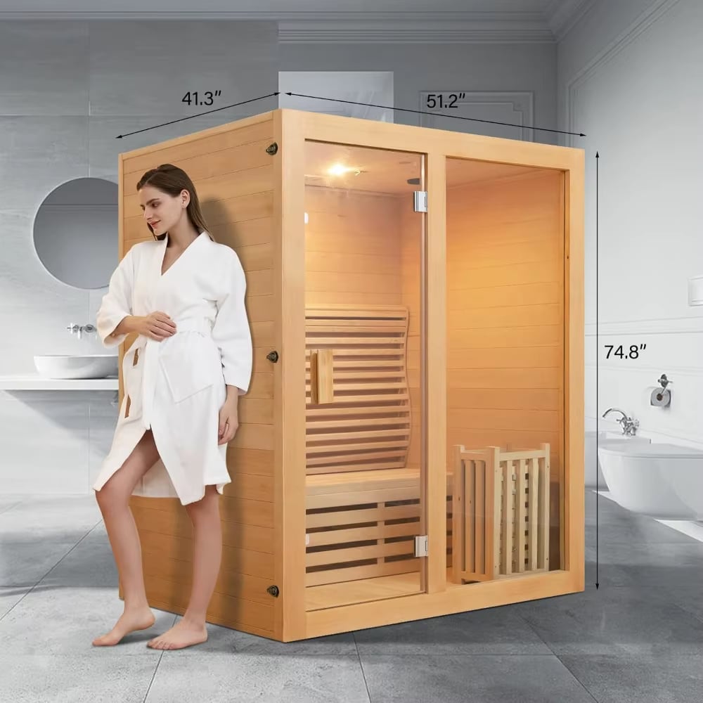 Indulge in the ultimate home spa experience with the Dreaming Still™ Luxury 2-Person Steam Sauna, a masterpiece of relaxation and refined craftsmanship. Constructed from premium Canadian hemlock wood, this elegantly designed sauna blends aesthetic charm with superior thermal efficiency and long-lasting durability.
