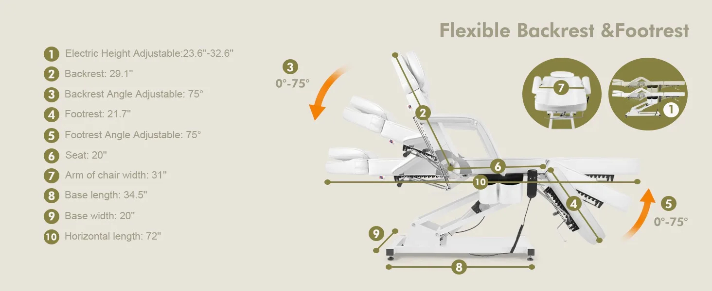 At 72 x 31 x 28 inches, the WillowEase is a spacious retreat without ever overpowering your space. Every inch is thoughtfully designed to serve your hands, your workflow, and your vision. Upholstered in genuine premium leather, it feels like soft luxury against the skin—effortlessly clean, durable, and elegant. The high-density sponge cushioning gently molds to your clients’ bodies, offering support that feels like care.